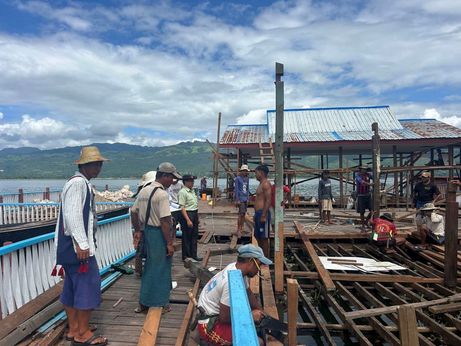 ၂၀၂၅ ခုနှစ်၊ ဩဂုတ်လ ၂၀ ရက် နေ့လယ် ၁ နာရီတွင် ရှမ်းပြည်နယ်၊ ကလောခရိုင်၊ ညောင်ရွှေ မြို့နယ် အင်းလေးကန်အတွင်းရှိ ငလျင်ဒဏ်ကြောင့်ပြိုကျပျက်စီးခဲ့သည့် ရေလယ်ဧည့်ခန်းမဆောင် ပြုပြင်မွမ်းမံနေမှုနှင့် ဆောင်ရွက်ပြီးစီးမှုအခြေအနေများအား မြို့နယ်တည်ဆောက်ရေးလုပ်ငန်း ကြီးကြပ်မှုကော်မတီဥက္ကဋ္ဌ မြို့နယ်အုပ်ချုပ်ရေးမှူး ဦးကျော်စွာလင်း ဦးဆောင်၍ မြို့နယ် တည်ဆောက်ရေးလုပ်ငန်းကြီးကြပ်မှုကော်မတီအဖွဲ့ဝင်များ၊ ရပ်ကွက်/ ကျေးရွာအုပ်စုအုပ်ချုပ်ရေးမှူး တို့နှင့်အတူ ကွင်းဆင်းစစ်ဆေးခဲ့ပြီး လိုအပ်ချက်များကို ပေါင်းစပ်ညှိနှိုင်းပေးခဲ့ကြောင်း သတင်းရရှိ ပါသည်။