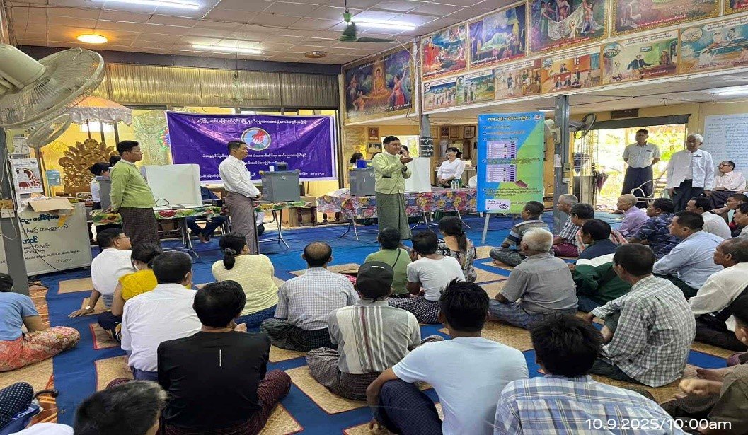 ၂၀၂၅ ခုနှစ်၊ စက်တင်ဘာလ ၁၀ ရက် နံနက် ၁၀ နာရီတွင် ရန်ကုန်တိုင်းဒေသကြီး၊ ဒဂုံမြို့သစ် ခရိုင်၊ ဒဂုံမြို့သစ်(မြောက်ပိုင်း)မြို့နယ်အတွင်းရှိ အမှတ်(၃၈)ရပ်ကွက်ရှိ သာသနာ့ပါလဓမ္မာရုံတွင် မဲဆန္ဒရှင်ပြည်သူများအား မြန်မာအီလက်ထရောနစ်မဲပေးစက်(MEVM) ကိုင်တွယ်အသုံးပြုနည်းနှင့် လက်တွေ့စမ်းသပ်မဲပေးခြင်းဆိုင်ရာ အခမ်းအနားသို့ မြို့နယ်စီမံခန့်ခွဲရေးနှင့်အုပ်ချုပ်ရေးကော်မတီ ဥက္ကဋ္ဌ မြို့နယ်အုပ်ချုပ်ရေးမှူး ဦးသန်းဝင်းနှင့်အဖွဲ့ဝင်များ၊ သက်ဆိုင်ရာတာဝန်ရှိသူများနှင့်အတူ တက်ရောက်ခဲ့ကြောင်း သတင်းရရှိပါသည်။