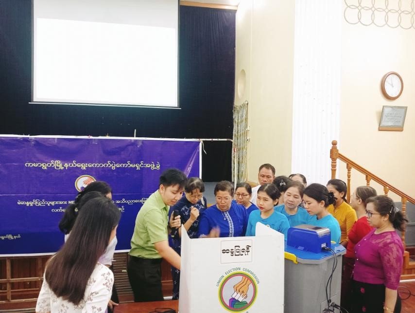 ၂၀၂၅ ခုနှစ်၊ စက်တင်ဘာလ ၁၅ ရက် နံနက် ၉ နာရီ ၃၅ မိနစ်တွင် ရန်ကုန်တိုင်းဒေသကြီး၊ ကမာရွတ်ခရိုင်၊ ကမာရွတ်မြို့နယ်၊ အမှတ်(၉)ရပ်ကွက်၊ ရန်ကုန်တက္ကသိုလ်ဝင်း၊ ဝိဇ္ဇာခန်းမတွင် မဲဆန္ဒရှင် ပြည်သူများအား မြန်မာအီလက်ထရောနစ် မဲပေးစက် (MEVM) ကိုင်တွယ်အသုံးပြုနည်းနှင့် လက်တွေ့စမ်းသပ်မဲပေးခြင်းဆိုင်ရာ အသိပညာပေးခြင်းအခမ်းအနားသို့ မြို့နယ်စီမံခန့်ခွဲရေးနှင့် အုပ်ချုပ်ရေးကော်မတီဥက္ကဋ္ဌ မြို့နယ်အုပ်ချုပ်ရေးမှူး ဦးကောင်းမြင့်သူနှင့် အဖွဲ့ဝင်များ၊ မြို့နယ် ရွေးကောက်ပွဲကော်မရှင်အဖွဲ့ခွဲမှ တာဝန်ရှိသူများ၊ ရပ်ကွက်အုပ်ချုပ်ရေးမှူးများ တက်ရောက်ခဲ့ပြီး မဲဆန္ဒရှင်ပြည်သူများမှ လက်တွေ့စမ်းသပ်မဲပေးခြင်းများ ဆောင်ရွက်ခဲ့ကြောင်း သတင်းရရှိပါသည်။