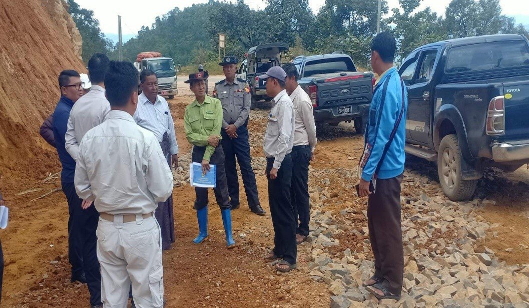 ၂၀၂၅ ခုနှစ်၊ အောက်တိုဘာလ ၁၃ ရက် နံနက် ၁၁ နာရီတွင် ရှမ်းပြည်နယ်၊ လွိုင်လင်ခရိုင်၊ လွိုင်လင်မြို့နယ်တွင် နေမင်းရောင်(BOT)ကုမ္ပဏီမှ တာဝန်ယူဆောင်ရွက်နေသည့် မိတ္ထီလာ-တောင်ကြီး- ကျိုင်းတုံ-တာချီလိတ်လမ်း၊ လွိုင်လင်ခရိုင်အပိုင်း လမ်းပြုပြင်ဆောင်ရွက်နေမှုအခြေအနေအား လွိုင်လင်ခရိုင် စီမံခန့်ခွဲရေးနှင့် အုပ်ချုပ်ရေးကော်မတီဥက္ကဋ္ဌ ခရိုင်အုပ်ချုပ်ရေးမှူး ဦးကြည်မြင့်သည် ခရိုင်ရဲတပ်ဖွဲ့မှူး၊ ခရိုင်လမ်းဦးစီးမှူး၊ နေမင်းရောင်ကုမ္ပဏီမှ တာဝန်ရှိသူများနှင့်အတူ ကွင်းဆင်းစစ်ဆေးခဲ့ပြီး လမ်းအရည်အသွေးပြည့်မီရေး၊ လမ်းဘေးရေမြောင်းများကောင်းမွန်စေရေးနှင့် လိုအပ်သည်များအား လမ်းညွှန်မှာကြားခဲ့ကြောင်း သတင်းရရှိပါသည်။