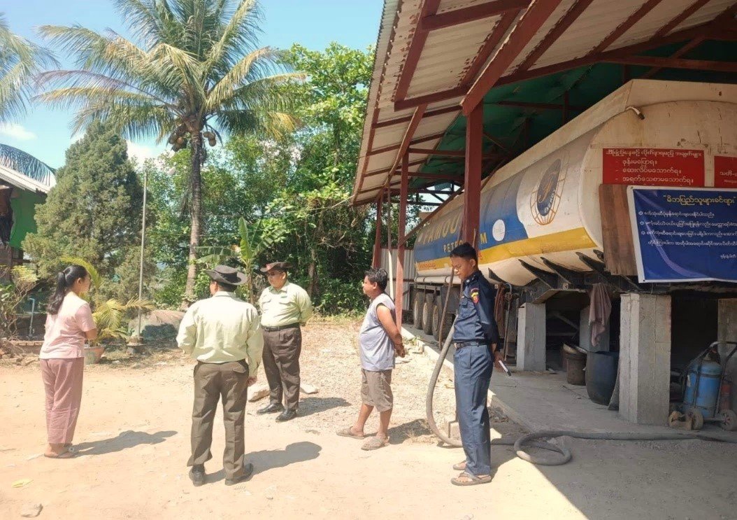 ကချင်ပြည်နယ်၊ တနိုင်းခရိုင်၊ တနိုင်းမြို့၊ ကင်ဆားရပ်ကွက်ရှိစက်သုံးဆီအရောင်းဆိုင်များအား မြို့နယ်ရေနံနှင့်ရေနံထွက်ပစ္စည်းဆိုင်ရာလုပ်ငန်းများထိန်းသိမ်းကြီးကြပ်ရေးအဖွဲ့မှစစ်ဆေးနေမှုအား ကြီးကြပ်ဆောင်ရွက်