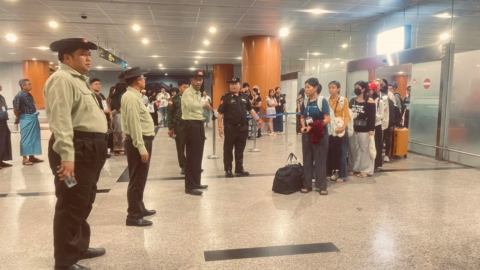 ရန်ကုန်တိုင်းဒေသကြီး၊ မင်္ဂလာဒုံခရိုင်၊ မင်္ဂလာဒုံမြို့နယ်၊ အနန်းပင်ရပ်ကွက်၊ ရန်ကုန်အပြည်ပြည်ဆိုင်ရာ လေဆိပ်သို့ ပြန်လည်ရောက်ရှိလာသော Online Scam အလုပ်ရုံများမှ မြန်မာအလုပ်သမားများအား သွားရောက်ကြိုဆို