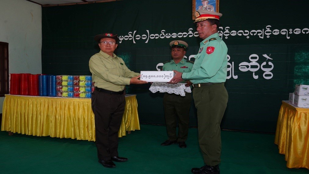 ၂၀၂၆ ခုနှစ်၊ မတ်လ ၂၃ ရက်၊ နံနက် ၈ နာရီတွင် ရှမ်းပြည်နယ်၊ ကျိုင်းတုံခရိုင်၊ ကျိုင်းတုံမြို့နယ်၊ အမှတ်(၁၁)တပ်မတော်တန်းမြင့်လေ့ကျင့်ရေးကျောင်း၌ ပြည်သူ့စစ်မှုထမ်း သင်တန်းအမှတ်စဉ်(၂၃) သင်တန်းဖွင့်ပွဲအခမ်းအနားသို့ တြိဂံဒေသတိုင်းစစ်ဌာနချုပ်တိုင်းမှူး ဗိုလ်ချုပ် စိုးမြတ်ထွဋ် ဦးဆောင်၍ ပြည်နယ်အစိုးရအုပ်ချုပ်ရေးအဖွဲ့ခွဲ(ရှမ်းအရှေ့)ဥက္ကဋ္ဌ ညွှန်ကြားရေးမှူး ဦးတင်လင်းနှင့်အဖွဲ့ဝင်များ၊ တြိဂံဒေသတိုင်းစစ်ဌာနချုပ်မှတာဝန်ရှိသူများ၊ ခရိုင်စီမံခန့်ခွဲရေးနှင့်အုပ်ချုပ်ရေးကော်မတီဥက္ကဋ္ဌ ခရိုင် အုပ်ချုပ်ရေးမှူး ဦးနိုးဝေနှင့် အဖွဲ့ဝင်များ၊ မြို့နယ်စီမံခန့်ခွဲရေးနှင့်အုပ်ချုပ်ရေးကော်မတီဥက္ကဋ္ဌနှင့် အဖွဲ့ဝင်များ၊ ပြည်နယ်/ ခရိုင်/ မြို့နယ်အဆင့်ဌာနဆိုင်ရာတာဝန်ရှိသူများနှင့်အတူ တက်ရောက်ခဲ့ပြီး သင်တန်းသားများအား ပြည်နယ်အစိုးရအဖွဲ့မှချီးမြှင့်ငွေ(၁၄,၅၀၀,၀၀၀ိ/-)ကျပ်နှင့် တစ်ကိုယ်ရေသုံး ပစ္စည်းများထောက်ပံ့ပေးအပ်ခဲ့ကြောင်း သတင်းရရှိပါသည်၊၊