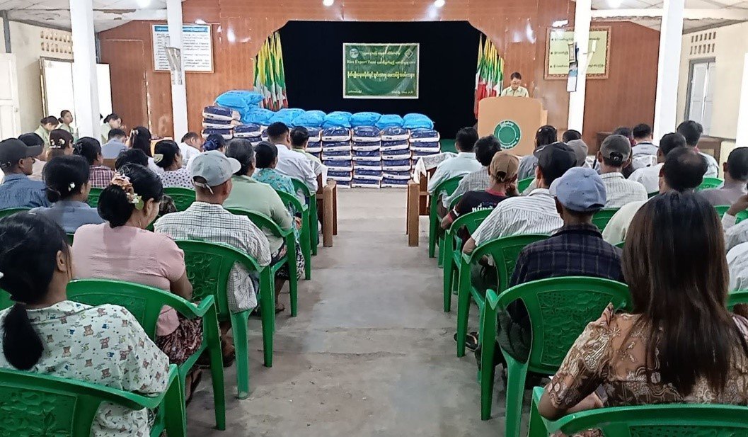 ပဲခူးတိုင်းဒေသကြီး၊ နတ်တလင်းခရိုင်၊ သဲကုန်းမြို့နယ်အထွေထွေအုပ်ချုပ်ရေးဦးစီးဌာနရုံး အစည်းအဝေး ခန်းမ၌ Rice Export Zone ဆောင်ရွက်မည့် တောင်သူများအား စိုက်ပျိုးရေးစရိတ်နှင့်သွင်းအားစုများ ထောက်ပံ့ပေးအပ်ပွဲအခမ်းအနားသို့ တက်ရောက်