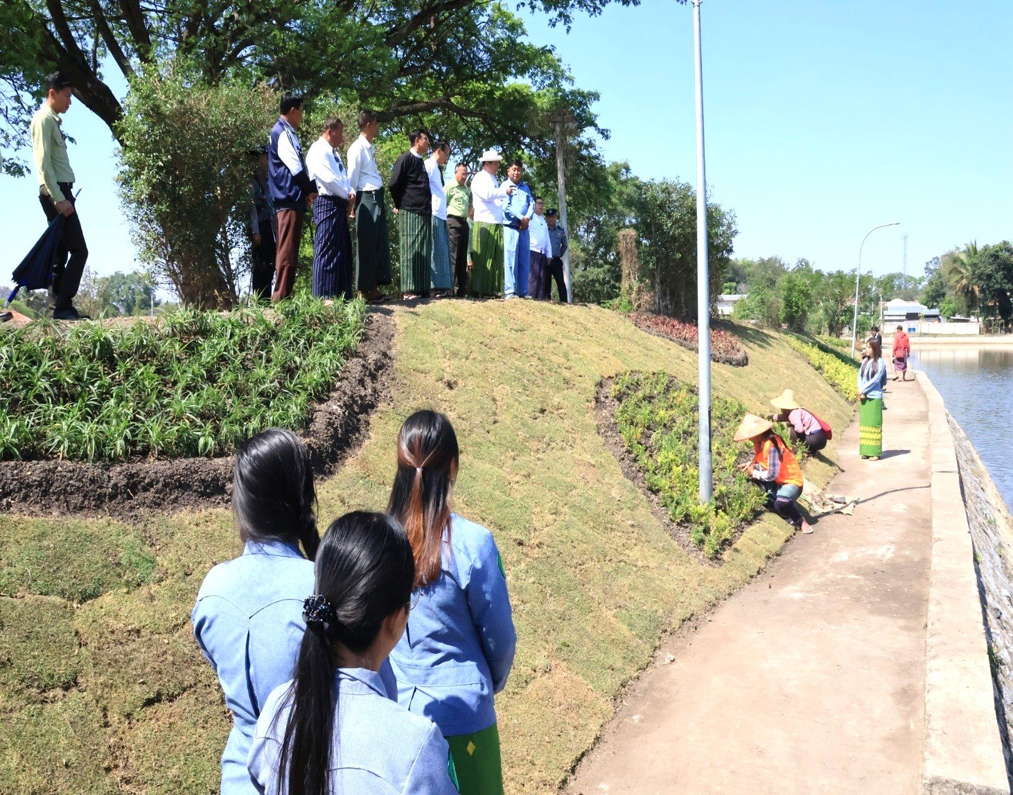 ကယားပြည်နယ်၊ လွိုင်ကော်ခရိုင်၊ လွိုင်ကော်မြို့ရှိ ပြည်သူများစိတ်အေးချမ်းသာစွာ အပန်းဖြေနိုင်ရေး အတွက် မင်းကျောင်းကန်သာကန်အမှတ်(၄)နှင့် (၅)တွင် ကန်ပတ်ဝန်းကျင်သန့်ရှင်းသာယာလှပ စေရေးစီစဉ်ဆောင်ရွက်နေမှု အခြေအနေတို့အား ကြည့်ရှုစစ်ဆေး