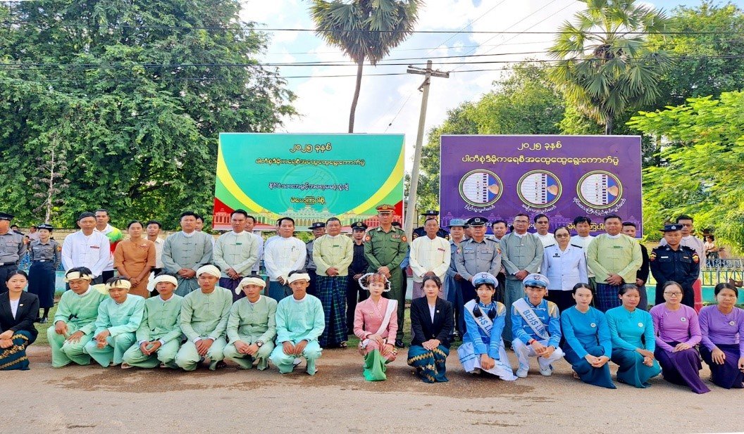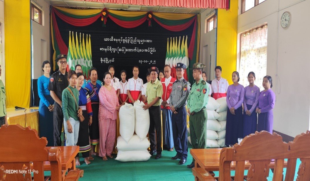 ရှမ်းပြည်နယ်၊ နမ့်စန်ခရိုင်၊ မိုးနဲမြို့၊ မြို့နယ်ကမ္ဘောဇခန်းမ၌ ယာယီနေရပ်စွန့်ခွာပြည်သူများအား ဆန်ရိက္ခာထောက်ပံ့ပေးအပ်ခြင်း အခမ်းအနားသို့ တက်ရောက်ထောက်ပံ့