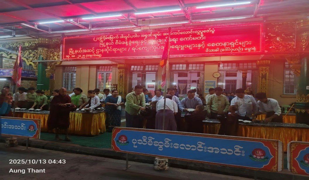 ၁၄-၁၀-၂၀၂၅၂၀၂၅ ခုနှစ်၊ အောက်တိုဘာလ ၁၃ ရက် နံနက် ၁၀ နာရီ ၃၀ မိနစ်တွင် ရှမ်းပြည်နယ်၊ နမ့်စန်ခရိုင်၊ မိုးနဲမြို့၊ မြို့နယ်ကမ္ဘောဇခန်းမ၌ ယာယီနေရပ်စွန့်ခွာပြည်သူများအား ဆန်ရိက္ခာထောက်ပံ့ပေးအပ်ခြင်း အခမ်းအနားသို့ မြို့နယ်စီမံခန့်ခွဲရေးနှင့် အုပ်ချုပ်ရေးကော်မတီဥက္ကဋ္ဌ မြို့နယ်အုပ်ချုပ်ရေးမှူး ဦးဝင်းမြင့်၊ မြို့နယ်စီမံခန့်ခွဲရေးနှင့် အုပ်ချုပ်ရေးကော်မတီအဖွဲ့ဝင်များ၊ မြို့နယ်ကြက်ခြေနီအသင်းနှင့် ယာယီနေရပ် စွန့်ခွာပြည်သူများ စုစုပေါင်းအင်အား ၁၀၀ ဦးခန့် တက်ရောက်ခဲ့ပြီး ယာယီနေရပ်စွန့်ခွာပြည်သူများအား ဆန်ရိက္ခာများထောက်ပံ့ပေးအပ်ခဲ့ကြောင်း သတင်းရရှိပါသည်။