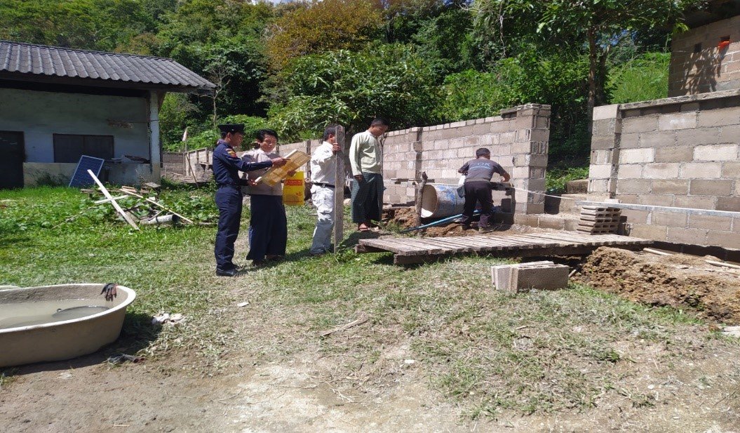 ရှမ်းပြည်နယ်၊ လင်းခေးခရိုင်၊ လင်းခေးမြို့နယ်၊ ၂၀၂၅ - ၂၀၂၆ ဘဏ္ဍာရေးနှစ်၊ ပြည်နယ်ဘဏ္ဍာ ရန်ပုံငွေဖြင့် အထွေထွေအုပ်ချုပ်ရေးဦးစီးဌာနရုံး၏ ၆ခန်းတွဲ ဝန်ထမ်းအိမ်ရာ ခြံစည်းရိုးအုတ်တံတိုင်း ကာရံခြင်း ဆောင်ရွက်နေမှုအား ကွင်းဆင်းစစ်ဆေး